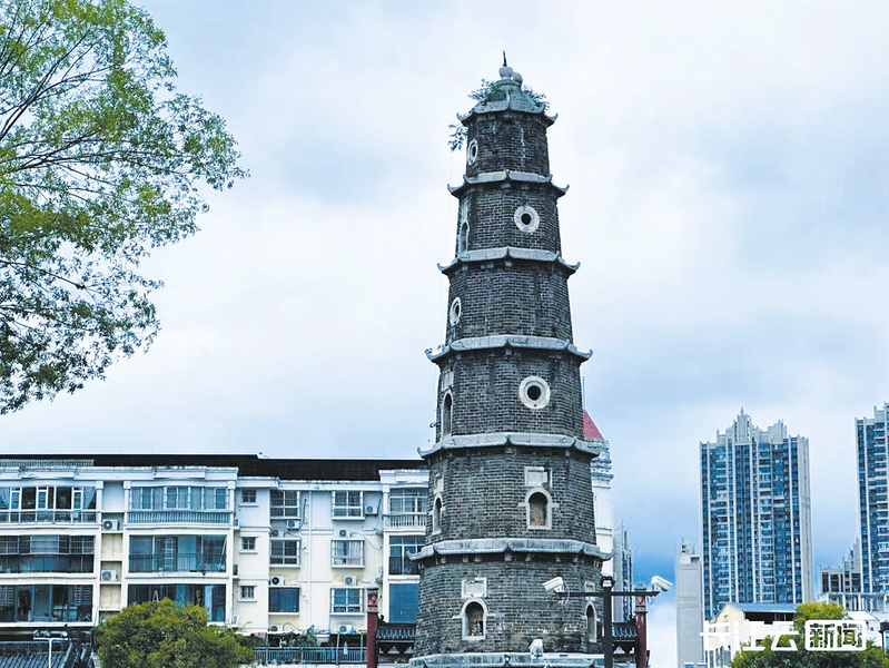 走近塔身,最先被觸動的是它規整又獨特的形制。塔高25米,不算高聳入云,卻憑著七層遞進的層次,透出中式建筑的韻律感;八面體的塔身用青磚砌就,每一塊磚都帶著歲月的包漿,雨水沖刷的痕跡在磚縫間暈開,成了天然的紋路。