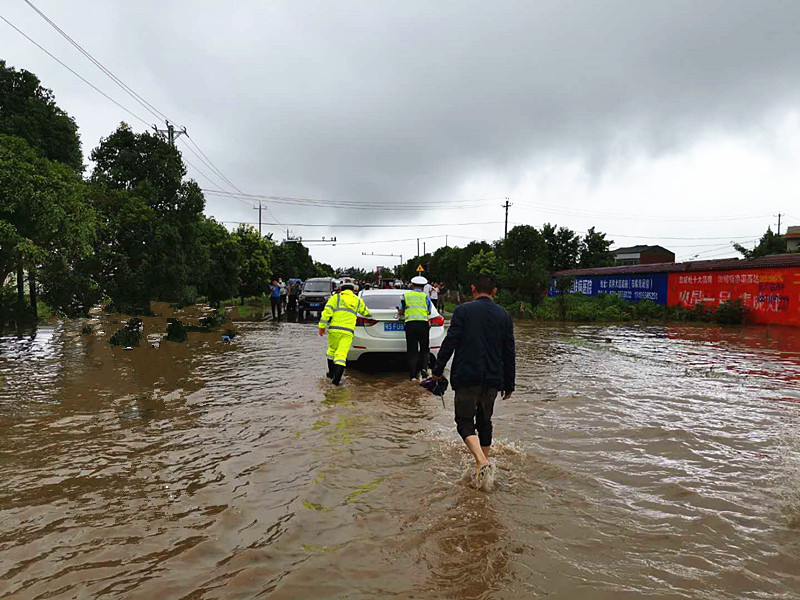 6月27日傍晚至28日8時,隨州市遭遇強降雨,城區降雨量達197毫米,造成隨州市區舜井大道文峰中學段、漢東路、青年西路曾都一中段、星光一路、交通大道等多個路段等嚴重積水,交通受阻,部分公交只好繞道行駛。由于正值早高峰上班期間,不少車輛行駛途中拋錨,隨州公安交通民警從28日凌晨3時開始冒雨上路執勤保暢通,確保早高峰時段城區交通正常運行。隨州氣象部門連發多個暴雨紅色預警信號,提醒市民注意防范,安全出行。