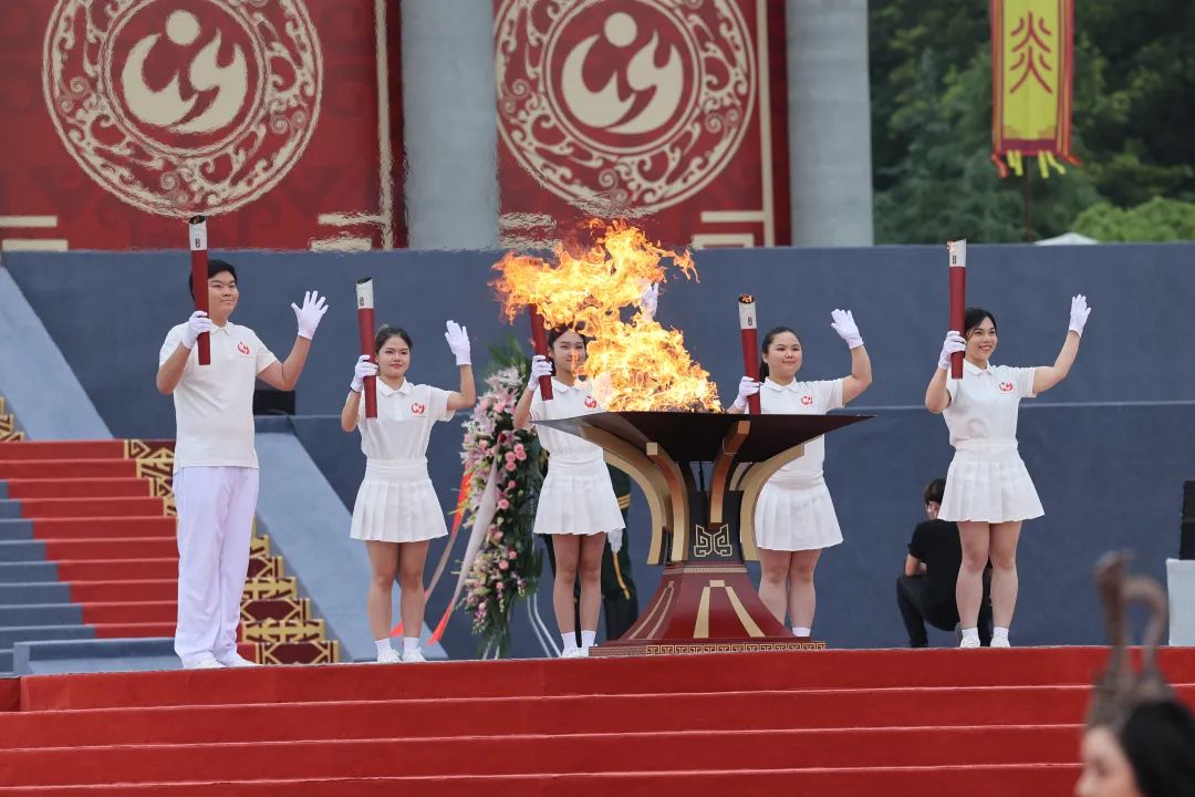 來自中國大陸、香港、澳門、臺灣和海外華僑青年學子代表,共同點燃新火。