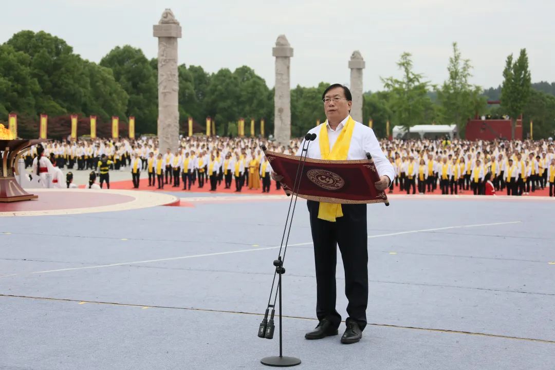 “時維甲辰,序近端陽。烈山聳翠,姜水流芳。四海龍裔,尋根厲鄉。懷赤子之景仰,慎終追遠;頌始祖之偉業,長歌未央……”王忠林恭讀《頌炎帝文》,敬頌炎帝神農煌煌功績。