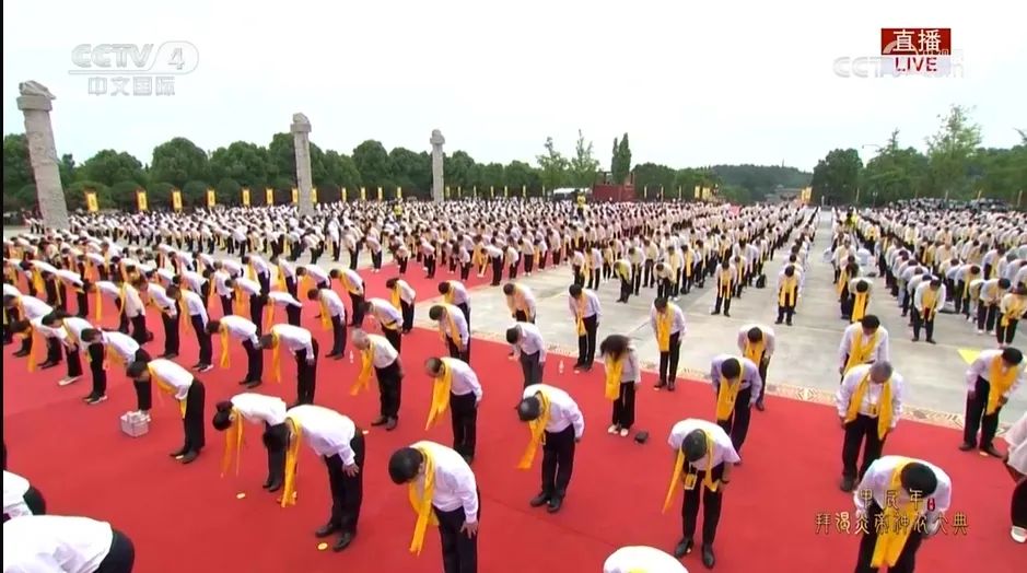 全體肅立,面向炎帝神農大殿內圣像,鞠躬行施拜禮。