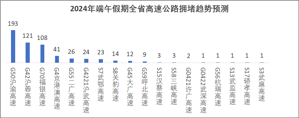 滬渝、滬蓉、福銀、京港澳、二廣、滬武、武鄂、關豹等高速擁堵風險較高。