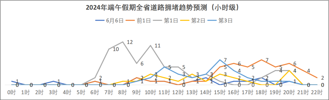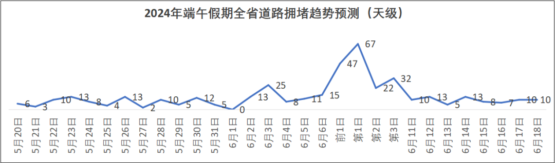 預計今年端午假期,擁堵時段主要集中在6月7日16~21時、6月8日9~12時、6月10日14~20時,其中第一日擁堵程度最高。