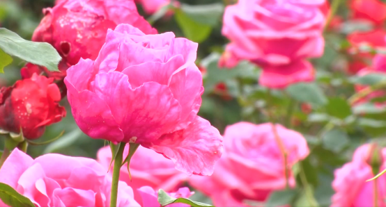 廣水市十里街道辦事處觀音村五彩繽紛、花意盎然。姹紫嫣紅的月季花綻放枝頭,在碧綠的嫩葉襯托下越發(fā)顯得嬌艷欲滴。微風(fēng)拂過,泛起陣陣“波濤”,空氣中彌漫著醉人的香甜。小路上,游人如織;花叢中,笑聲朗朗。