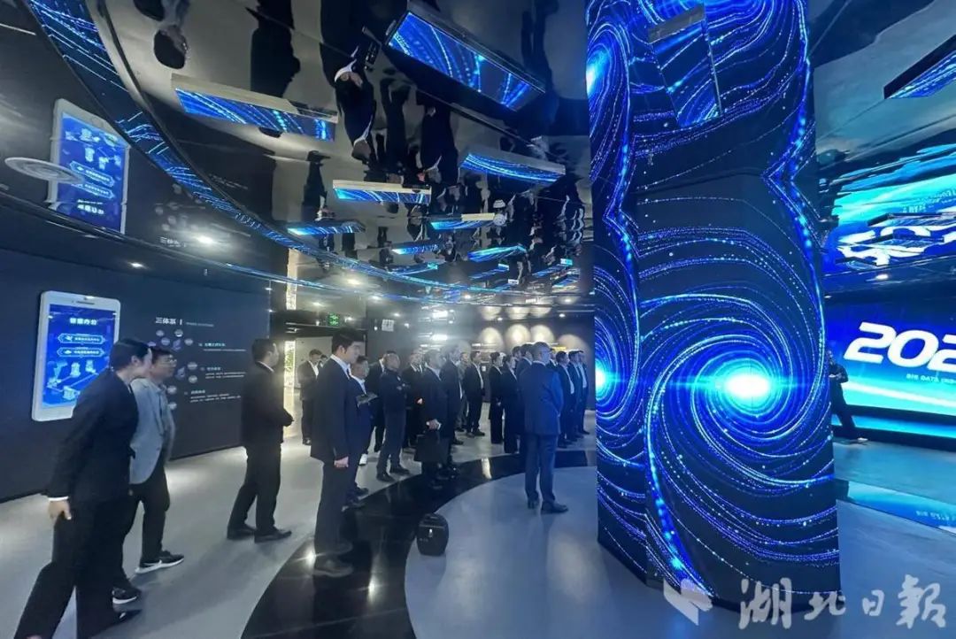 在參觀考察第一站——隨州大數據產業園,數字隨州展示體驗中心吸引不少企業家駐足。