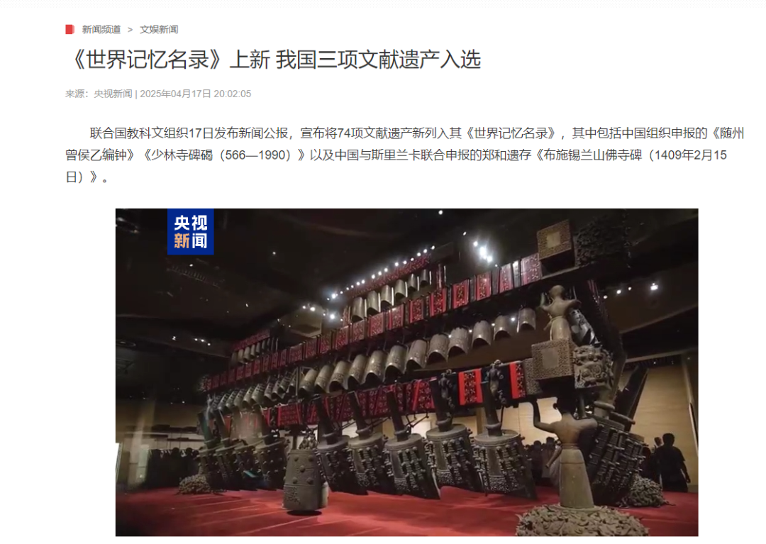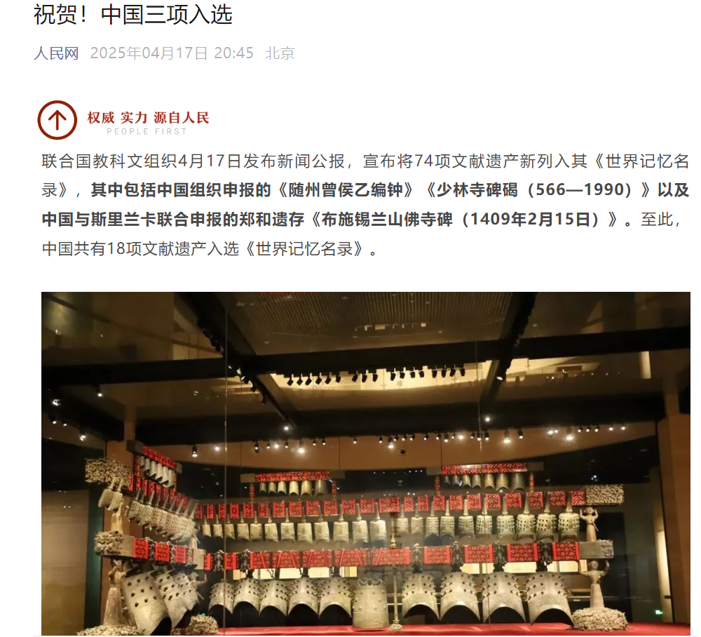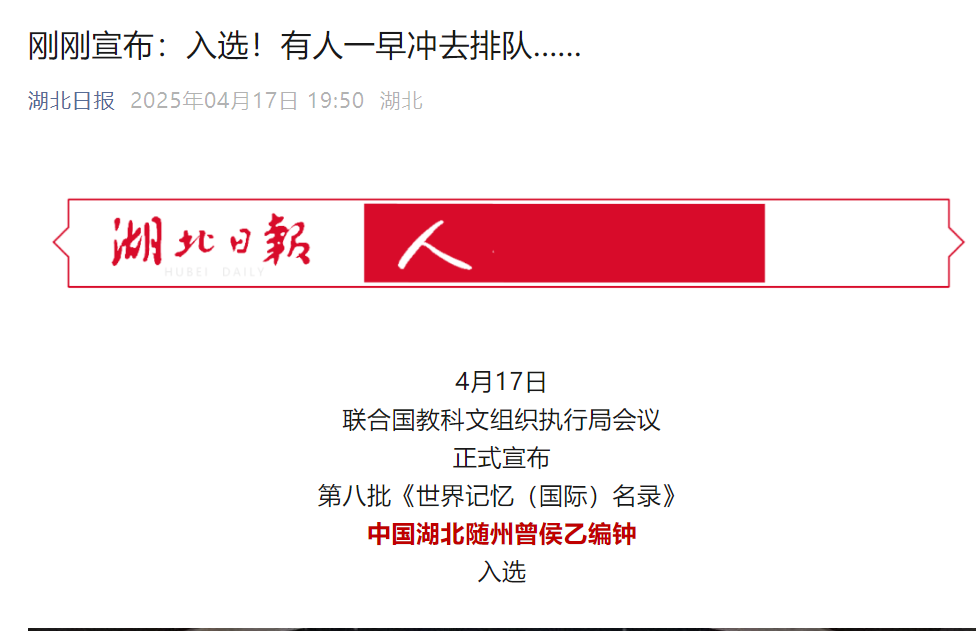 專(zhuān)家認(rèn)為,隨州曾侯乙編鐘是人類(lèi)目前所見(jiàn)最早體現(xiàn)音樂(lè)數(shù)理關(guān)系的出土文獻(xiàn),是迄今所知公元前5世紀(jì)全世界唯一的有聲文獻(xiàn),是目前世界僅存的公元前5世紀(jì)聲文對(duì)應(yīng)的樂(lè)律文獻(xiàn),是人類(lèi)軸心時(shí)代高度發(fā)達(dá)的抽象思維能力的見(jiàn)證。隨州曾侯乙編鐘的入選填補(bǔ)了湖北省《世界記憶(國(guó)際)名錄》空白。