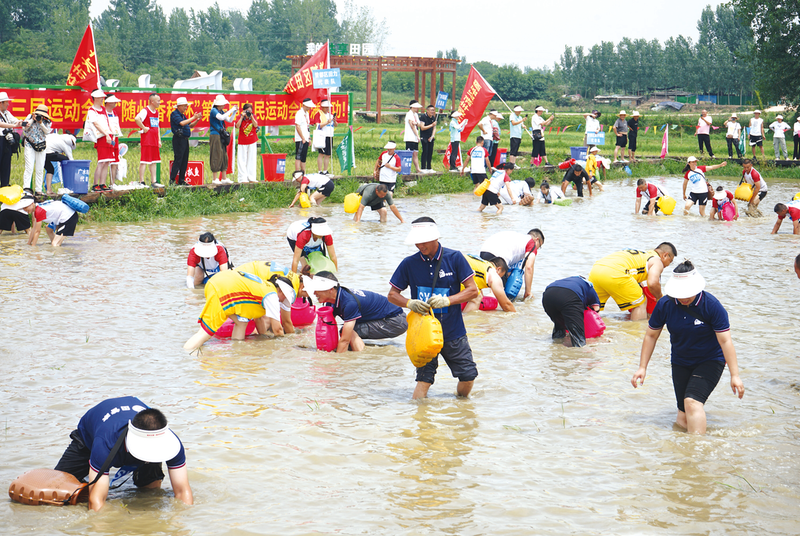 圖為池塘抓魚(yú)比賽 ·鐘金輝攝·