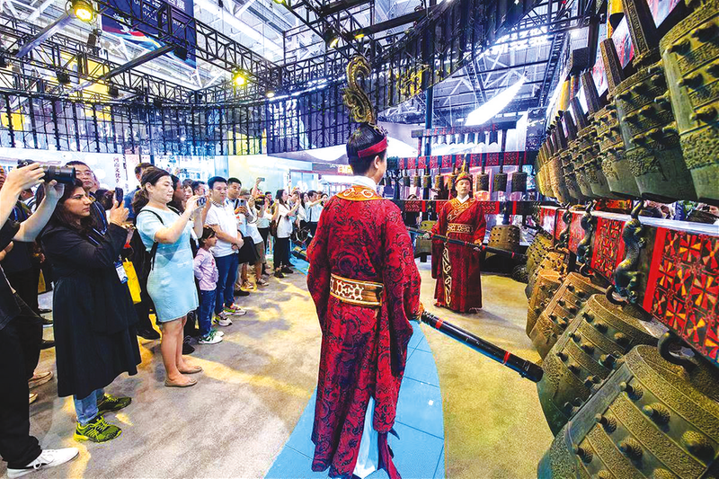 5月23日至27日,隨州編鐘,曾侯乙鑒缶、曾侯乙尊盤縮比文創品,龍紋銅盒、鹿角立鶴彩金鑰匙扣、盤龍罍冰箱貼等一批文創產品亮相第20屆中國(深圳)國際文化產業博覽交易會。