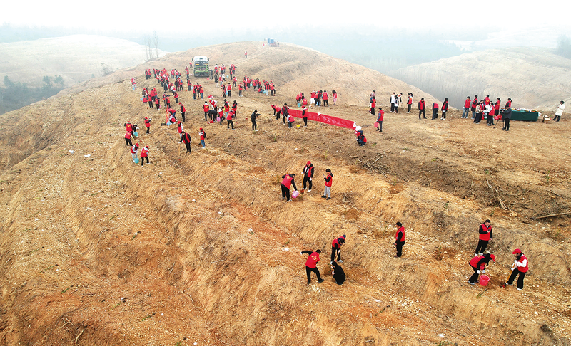 青年到澴潭鎮開展“美麗隨州·青春行動”義務植樹活動