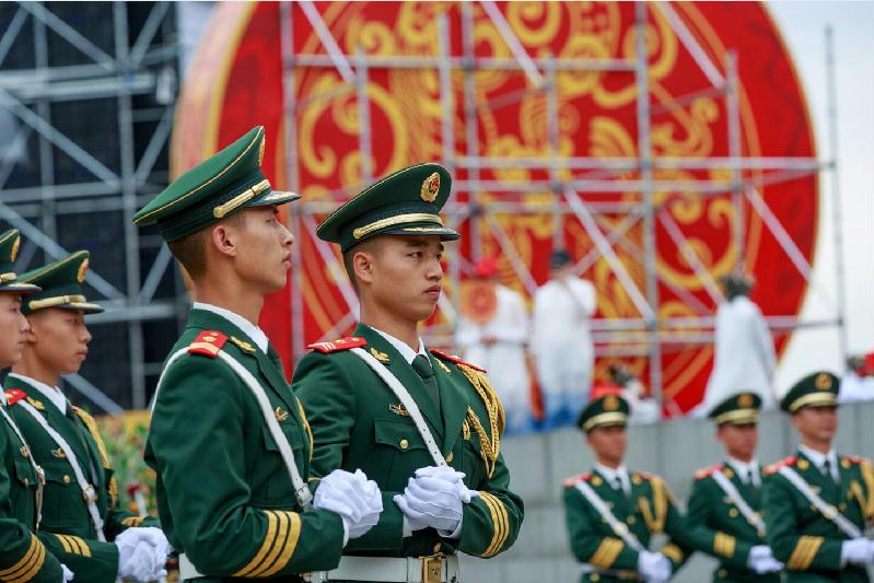 ????????? 參加尋根節開幕式的武警官兵在現場情景。