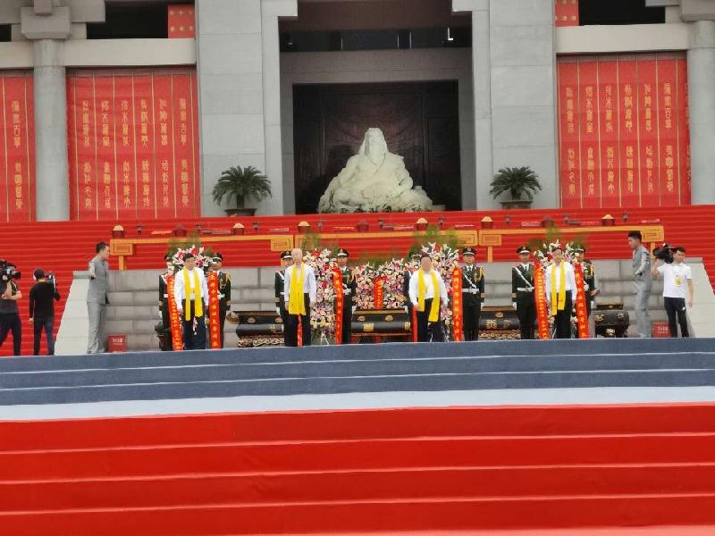 ????????? 海峽兩岸關系協會副會長孫亞夫、中國文聯副主席左中一、中華全國歸國華僑聯合會副主席齊全勝、中華炎黃文化研究會常務副會長常文光敬獻花籃。