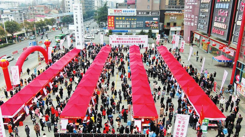 連日來,曾都區面向城鄉勞動者開展“送政策、送崗位、送培訓、送服務”專場招聘會,先后走進何店、萬店等鄉鎮,著力化解“用工難、就業難”矛盾。圖為2月12日,曾都區在大潤發廣場舉行虎年第三場招聘會。