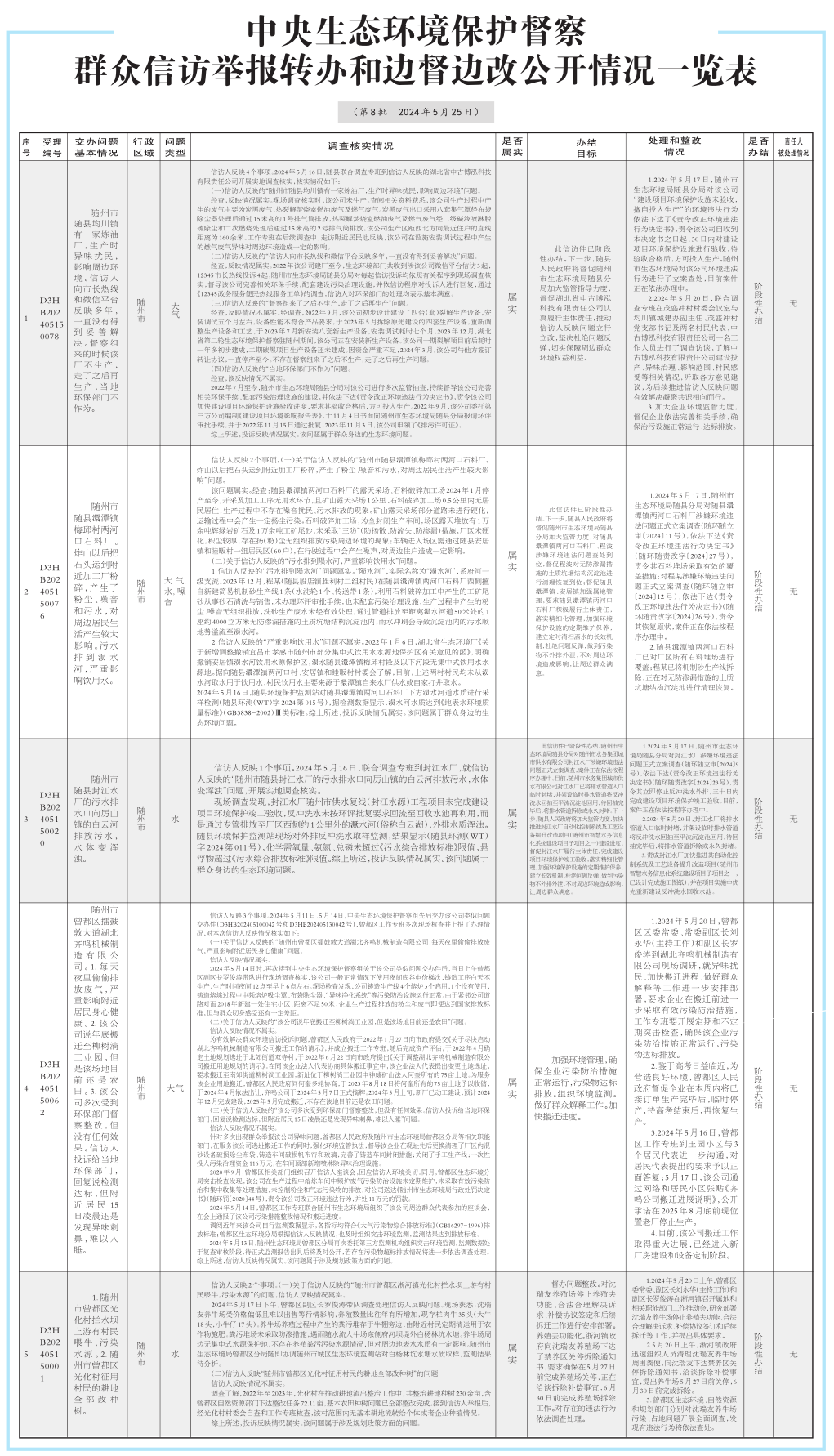 中央生態環境保護督察群眾信訪舉報轉辦和邊督邊改公開情況一覽表