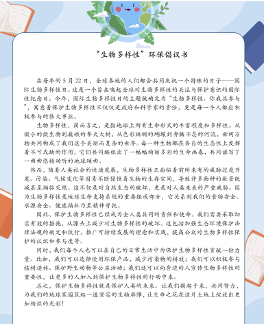 5月22日—29日,隨州市生態環境局聯合隨州市教育局在全市小學開展了2024年國際生物多樣性日宣傳活動。旨在廣泛宣傳生物多樣性保護的重要意義和成效,進一步提升公眾參與保護生物多樣性的意識和水平。活動期間向全市小學生發出了生物多樣性保護倡議,通過學校老師組織學生在課堂上觀看了生物多樣性保護宣傳片,并在曾都區編鐘小學開展了現場活動。