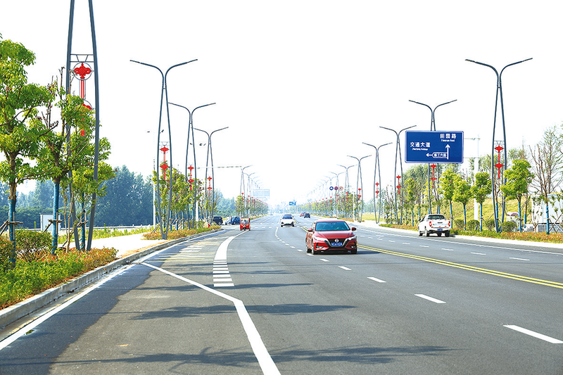 ????記者在現場看到,新修的道路寬闊平整,車水馬龍,平坦整潔的路面,嶄新的交通設施,道路標線清晰明顯,路燈綠植整齊排列,來往車輛有序通行,讓人耳目一新倍感舒暢。