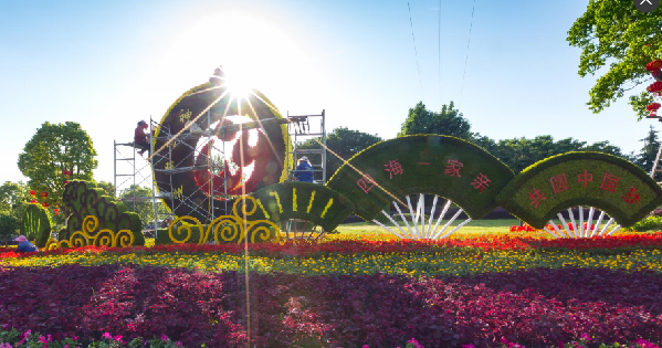據(jù)統(tǒng)計(jì),5大造型扎景擺放孔雀草、矮牽牛、一串紅、海棠等12個(gè)品種花卉,達(dá)22萬盆。