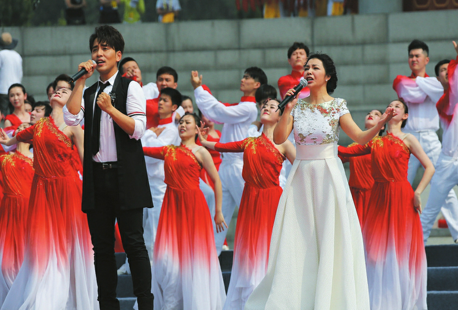 ? ? 國務院臺灣事務辦公室副主任龍明彪、中國文聯副主席左中一、中華全國歸國 ? 華僑聯合會副主席康曉萍、中華炎黃文化研究會常務副會長常文光敬獻花籃