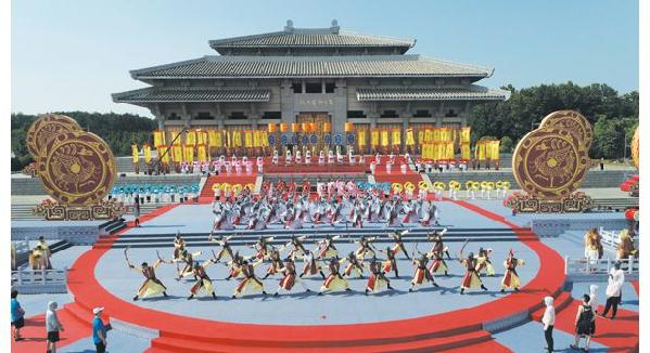 6月7日15時,炎帝故里景區謁祖廣場上,悠揚的編鐘樂曲響起,拜祖大典帶妝彩排開始,在導演的指揮下,演員們冒著高溫排練整個拜謁的過程。