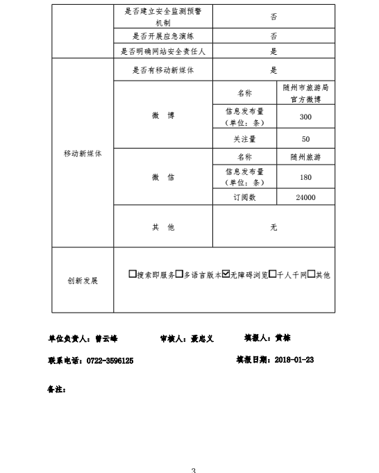 隨州市外事僑務旅游局網站工作年度報表(2017年度)