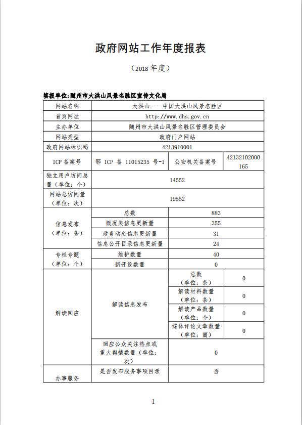大洪山網(wǎng)站工作年度報(bào)表(2018年度)