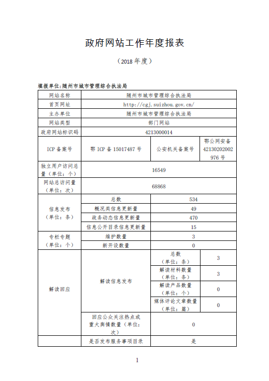 隨州市城管綜合執(zhí)法局網(wǎng)站工作年度報(bào)表(2018年度)