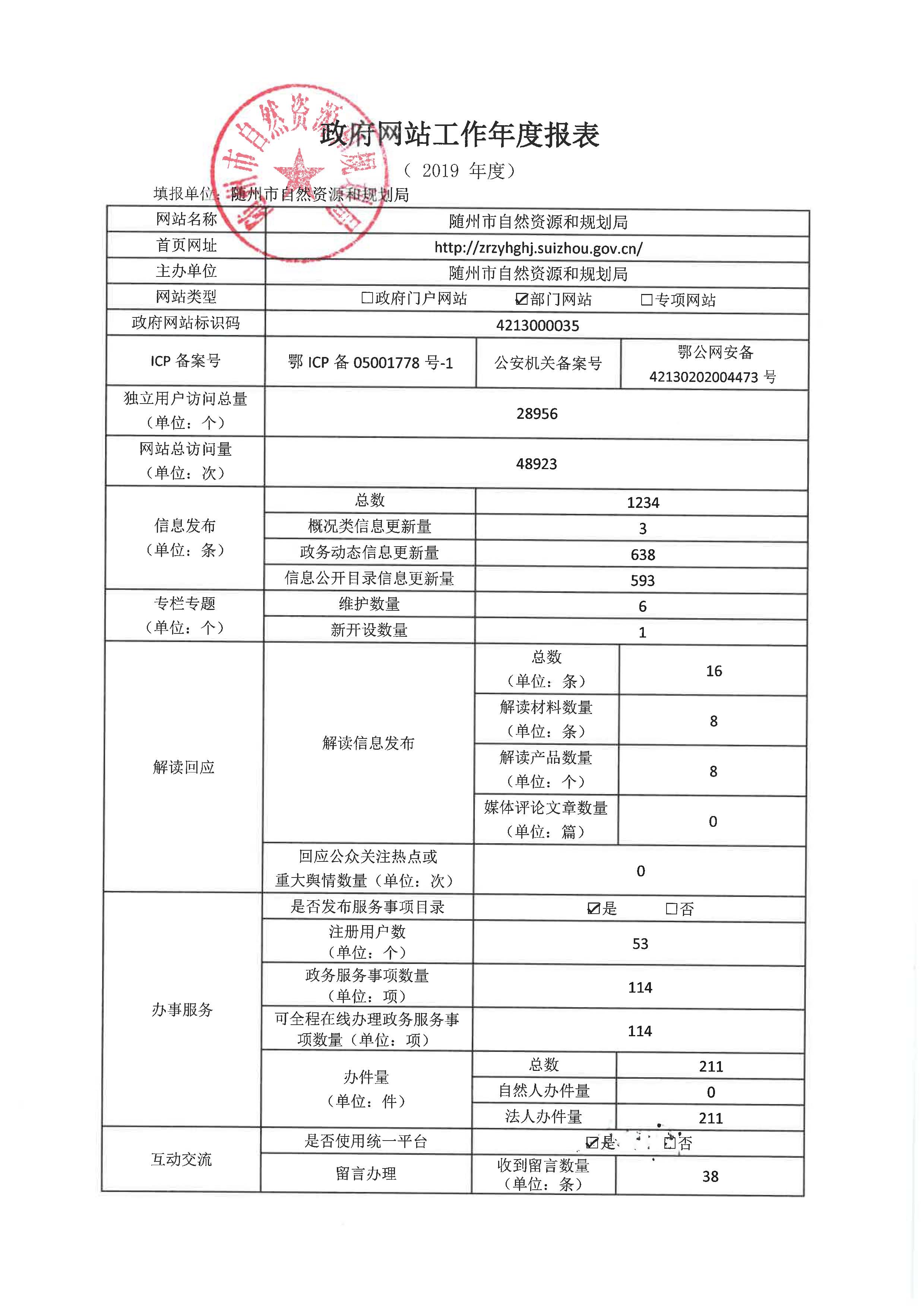 隨州市自然資源和規(guī)劃局2019年政府網(wǎng)站工作年度報表