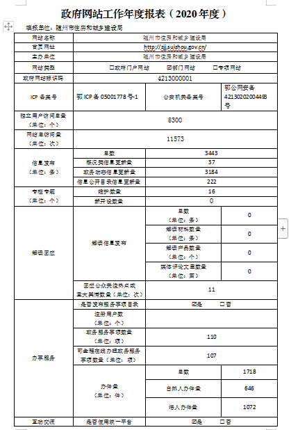 隨州市住建局2020年政府網(wǎng)站工作年度報(bào)表