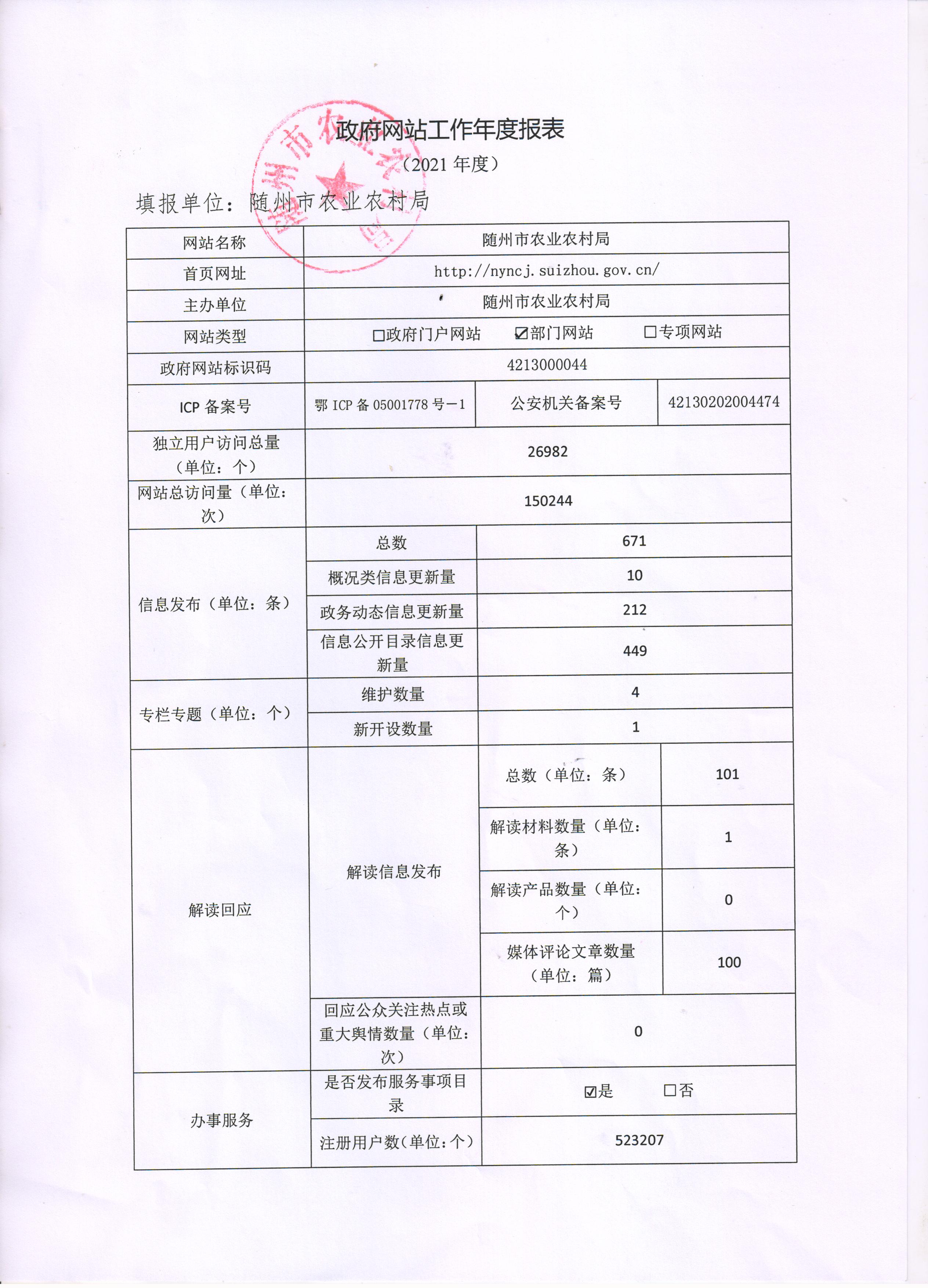 隨州市農(nóng)業(yè)農(nóng)村局2021年政府網(wǎng)站工作年度報(bào)表