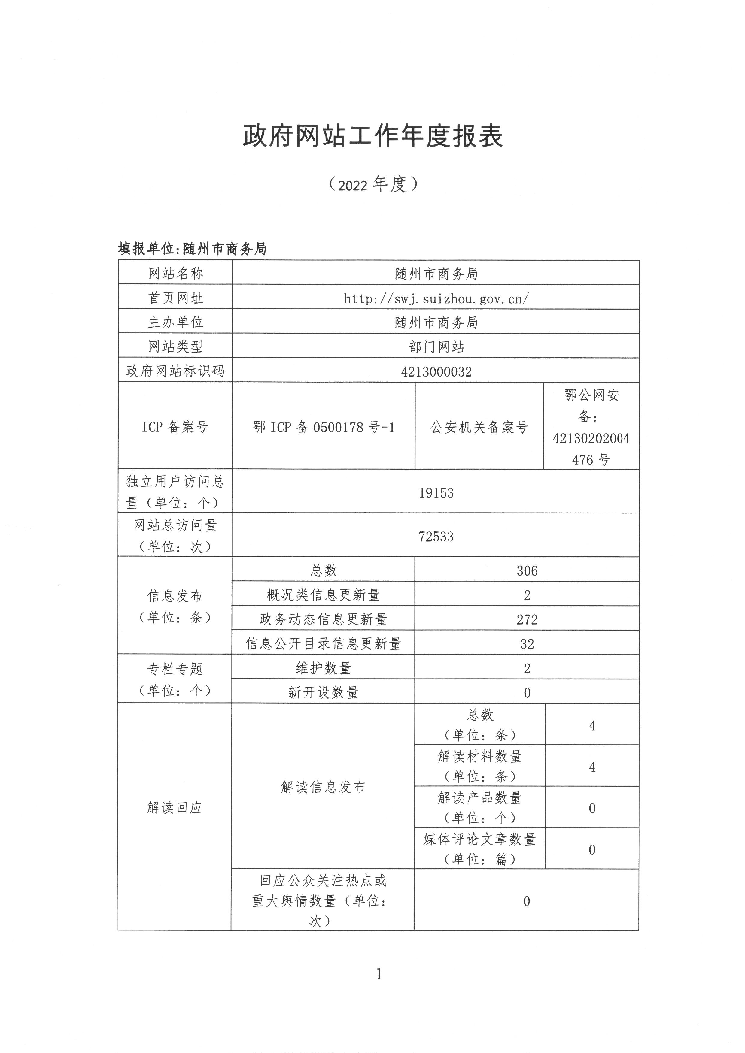 隨州市商務(wù)局2022年政府網(wǎng)站工作年度報表