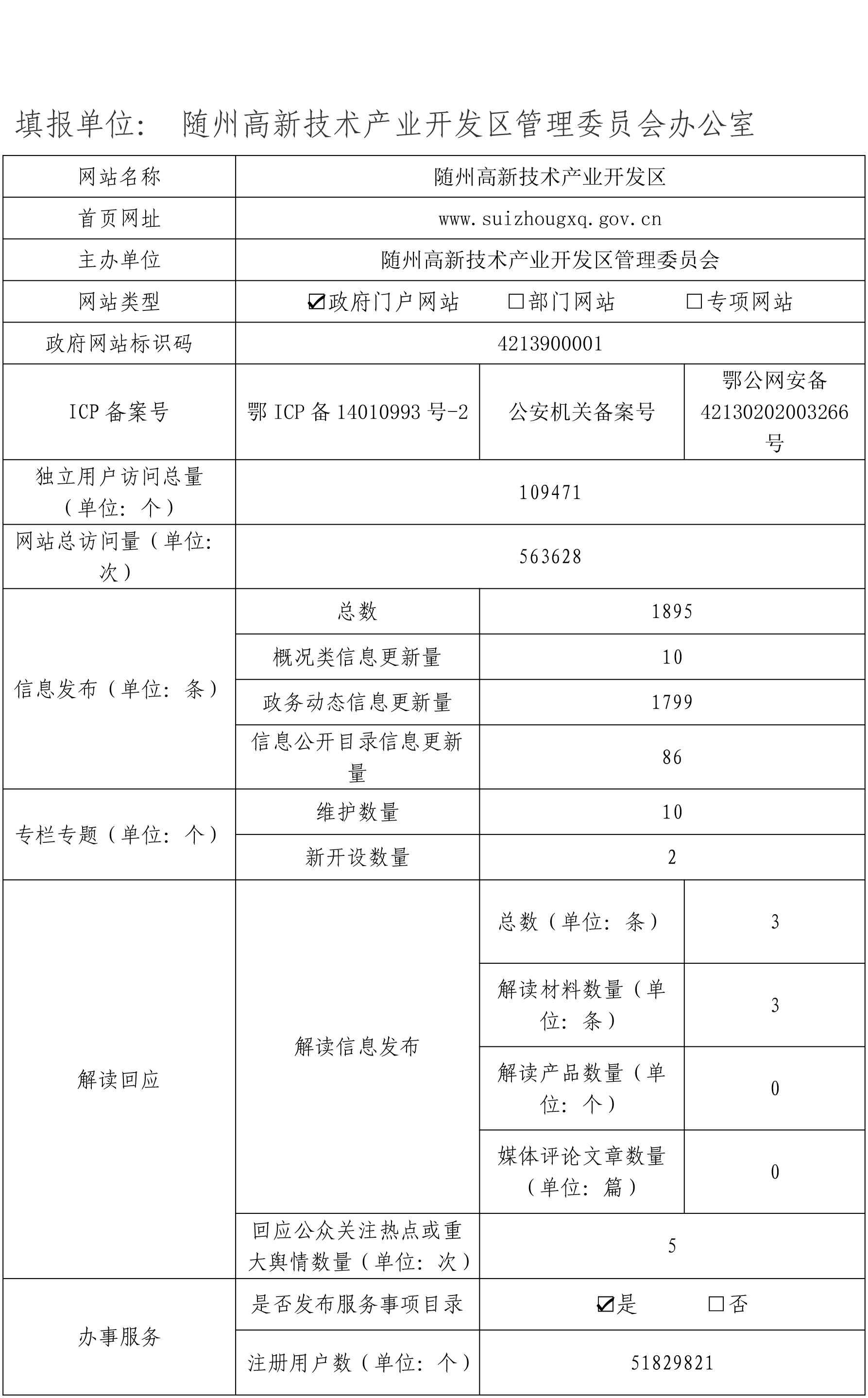 隨州高新技術產業開發區管理委員會2024年政府網站工作年度報表