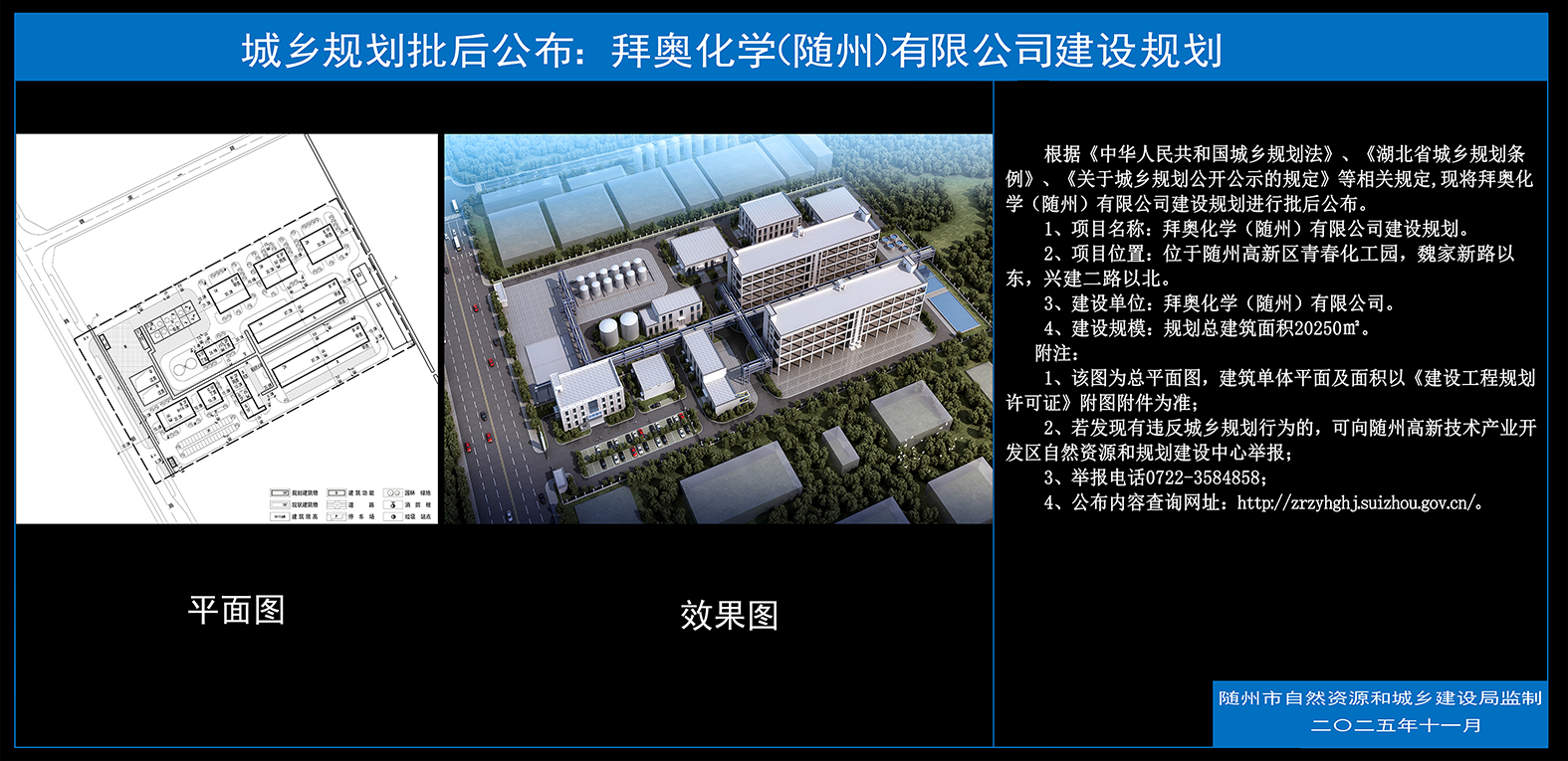 城鄉規劃批后公布:拜奧化學(隨州)有限公司建設規劃