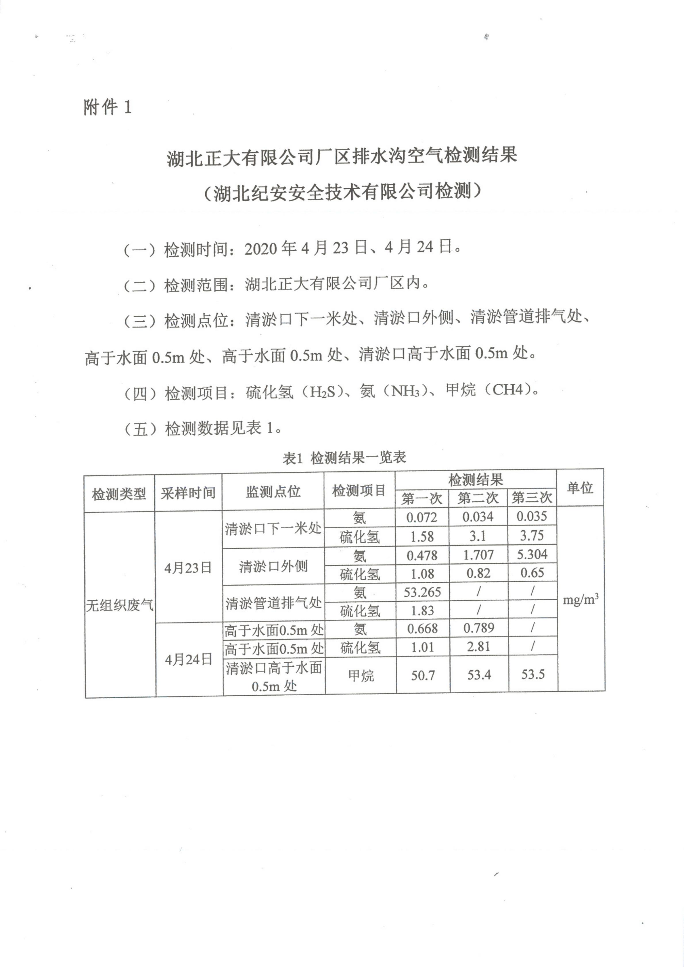 附件:1、湖北正大有限公司廠區(qū)排水溝空氣檢測(cè)結(jié)果