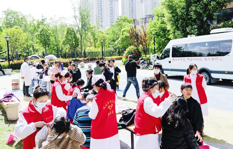 曾都區(qū)涢水街道推動社區(qū)志愿服務活動常態(tài)化,發(fā)揮志愿服務在構建和諧文明社區(qū)中的積極作用。近日,該街道在涢水社區(qū)舉行“公益集市進社區(qū)”活動,開展家電維修、防詐騙知識宣傳、義診等志愿活動。圖為市中醫(yī)醫(yī)院醫(yī)護人員為涢水社區(qū)居民義診。