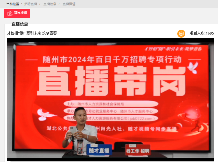 8月24日上午,隨州市人力資源和社會保障局以“才智相‘隨’·職引未來·筑夢青春”為主題舉辦首場“百日千萬招聘專項行動”直播帶崗活動。