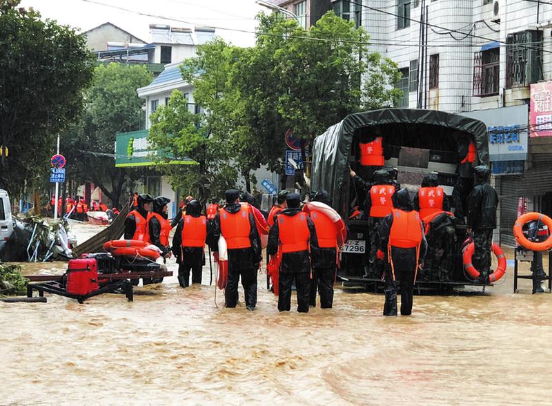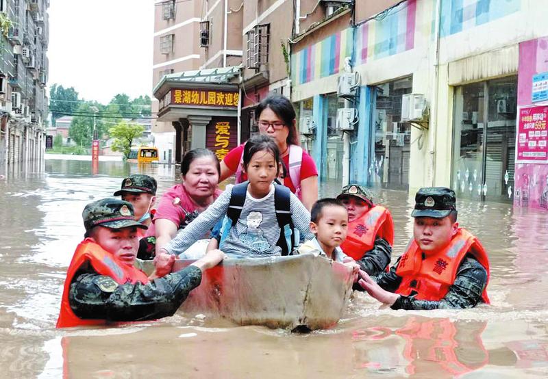 武警隨州支隊在曾都區何店鎮救援。?(隨州日報通訊員陳一帆攝)