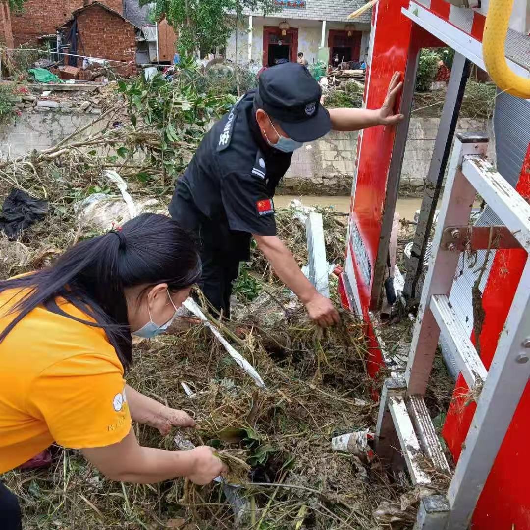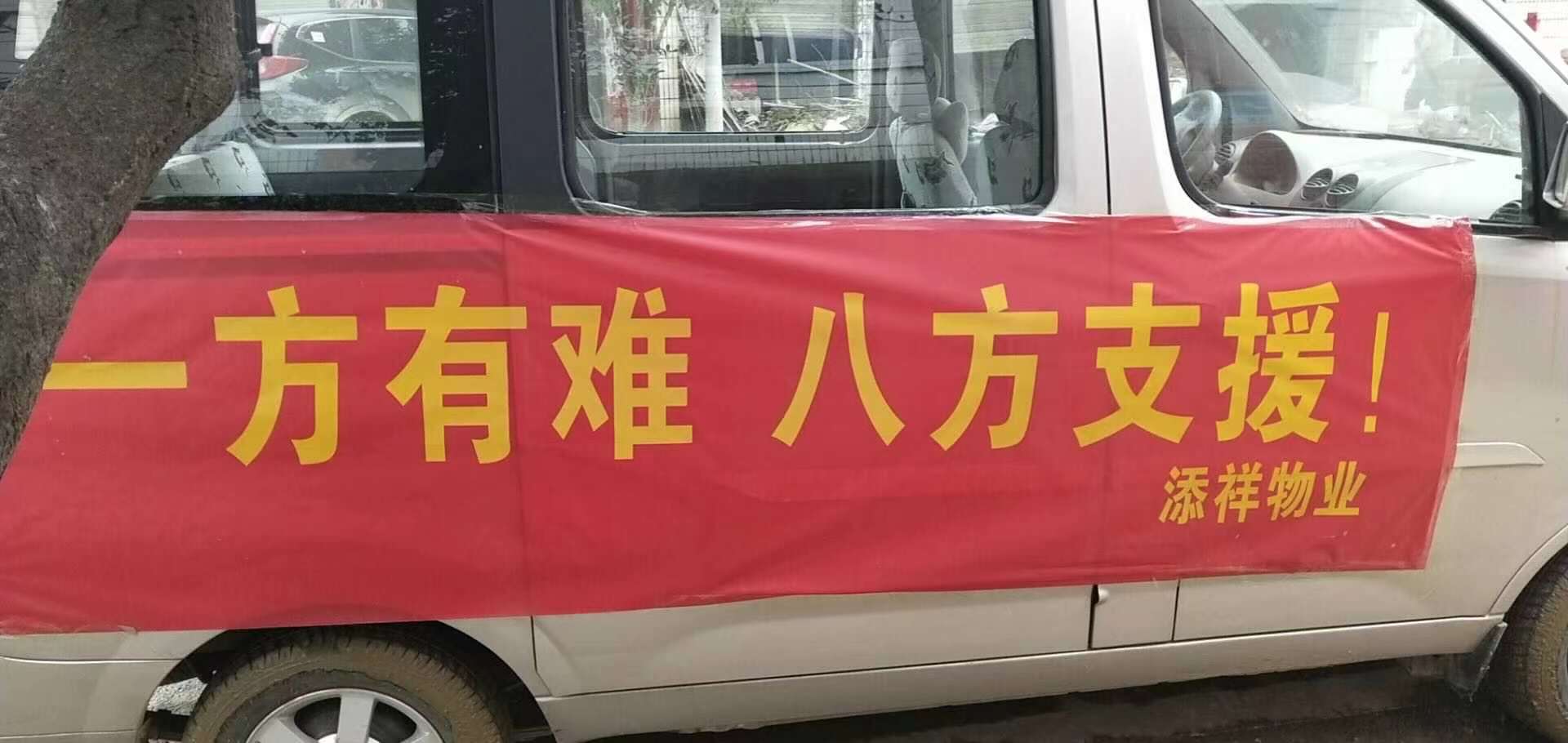 在外出差的公司總經理胡成春專門安排組織愛心捐贈,8月13日晚10時,公司會計將首批捐款7000元匯入慈善總會賬戶,向災區人民獻出自己的一份愛心。同時咨詢救災信息和需求,得知災區面臨恢復重建垃圾淤泥需要人力突擊時,8月14日,添祥物業公司有在胡成春帶隊下,組織30余人的突擊隊,分兩批奔赴受災最嚴重的柳林鎮,開展清淤消殺工作。從早上干到晚上10點,將柳林派出所清理清潔。