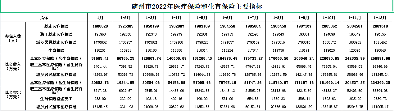 隨州市2022年醫(yī)療保險(xiǎn)和生育保險(xiǎn)主要指標(biāo)