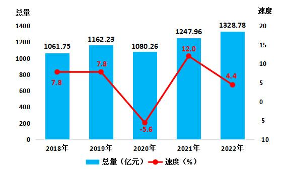 ??全市實(shí)現(xiàn)生產(chǎn)總值(GDP)1328.78億元,按可比價(jià)格計(jì)算,比上年增長(zhǎng)4.4%。其中,第一產(chǎn)業(yè)實(shí)現(xiàn)增加值189.04億元,增長(zhǎng)3.7%;第二產(chǎn)業(yè)實(shí)現(xiàn)增加值585.64億元,增長(zhǎng)5.7%;第三產(chǎn)業(yè)實(shí)現(xiàn)增加值554.10億元,增長(zhǎng)3.3%。三次產(chǎn)業(yè)比重由2021年的14.8:43.4:41.8調(diào)整為14.2:44.1:41.7。全市人均GDP為65956元,按年平均匯率計(jì)算折合9806美元。 ?