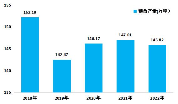 ??圖2:2018-2022年隨州糧食產(chǎn)量 ?