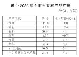 ??全年實(shí)現(xiàn)農(nóng)林牧漁業(yè)增加值206.19億元,按可比價(jià)格計(jì)算,比上年增長(zhǎng)4.2%。糧食種植面積209.86千公頃,增長(zhǎng)0.03%;棉花種植面積3.87千公頃,下降3.1%;油料種植面積43.82千公頃,增長(zhǎng)2.9%。糧食總產(chǎn)量145.82萬(wàn)噸,下降0.8%;棉花總產(chǎn)量0.29萬(wàn)噸,下降2.4%;油料產(chǎn)量10.94萬(wàn)噸,增長(zhǎng)4.1%。完成人工造林1.34千公頃,封山育林2.07千公頃。 ?