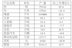 ??全年規(guī)模以上工業(yè)中,農(nóng)副食品加工業(yè)增加值比上年增長(zhǎng)13.2%,紡織業(yè)下降9.8%,化學(xué)原料和化學(xué)制品制造業(yè)增長(zhǎng)4.2%,非金屬礦物制品業(yè)增長(zhǎng)6.3%,黑色金屬冶煉和壓延加工業(yè)增長(zhǎng)57.8%,通用設(shè)備制造業(yè)增長(zhǎng)3.2%,專用設(shè)備制造下降2.4%,汽車制造業(yè)增長(zhǎng)3.4%,電氣機(jī)械和器材制造業(yè)增長(zhǎng)14%,計(jì)算機(jī)、通信和其他電子設(shè)備制造業(yè)下降1.4%,電力、熱力生產(chǎn)和供應(yīng)業(yè)增長(zhǎng)3.1%。 ?