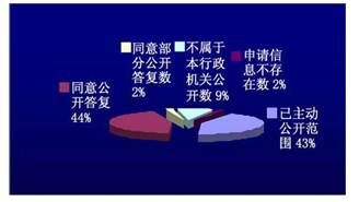 屬于已主動公開范圍的有23件,占42.6%;同意公開答復數24件,占44.4%;同意部分公開答復數1件,占1.9%;不屬于本行政機關公開數5件,占9.2%;申請信息不存在數1件,占1.9%。