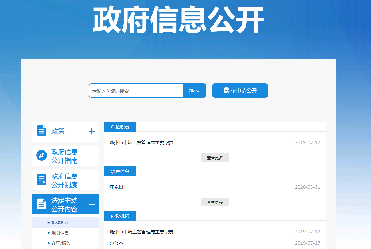 市市場監管局制定了隨州市市場監督管理局工作規則、公文管理制度,建立起本部門政府信息公開審核發布、政策解讀、依申請公開辦理答復相關規范制度。在公文處理過程中,對規范性文件和其他文件進行了主動公開。