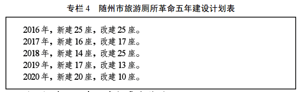 扎實推進旅游廁所建改工作,計劃新(改)建182座旅游廁所,爭取到2020年實現旅游景區、旅游線路沿線、交通集散點、旅游街區、鄉村旅游點、旅游餐飲點、旅游娛樂點、旅游購物點等游客行程所及的旅游公共場所都有相應等級的旅游廁所,且數量與游客接待規模相適應。