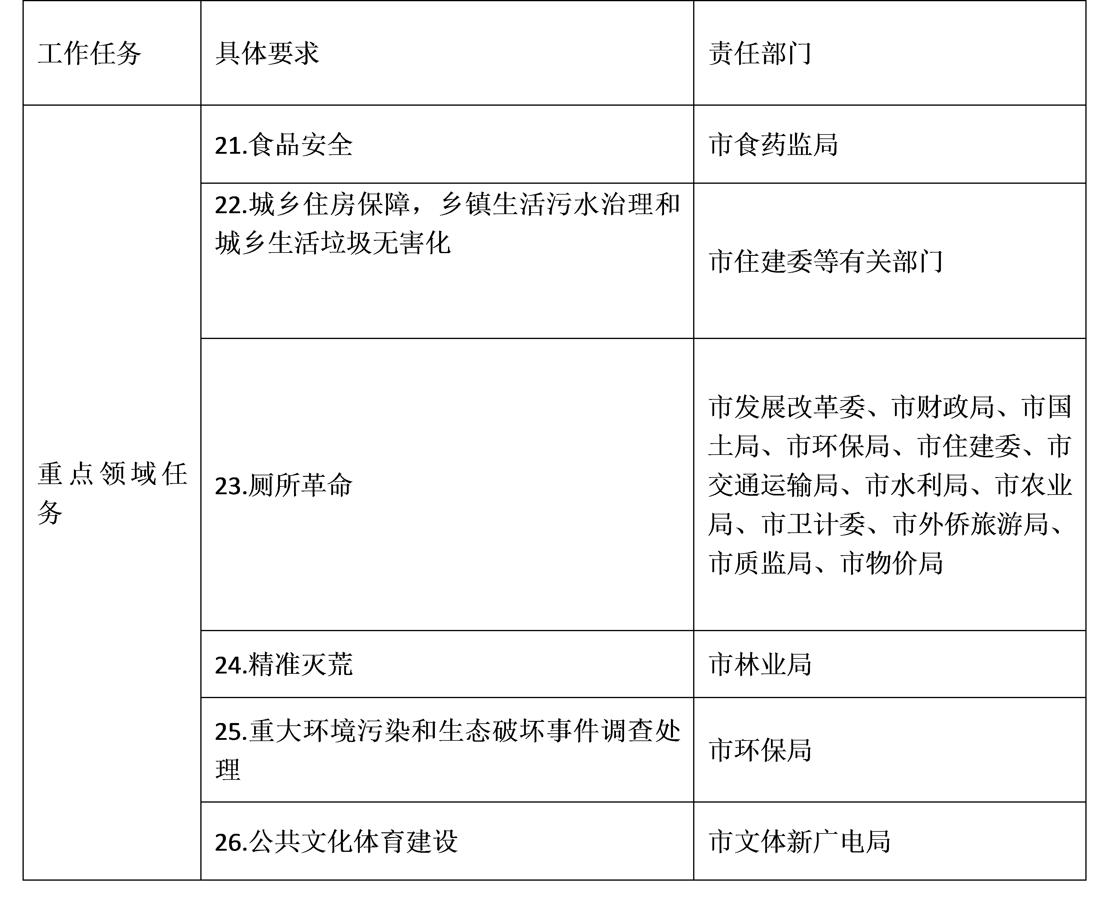 (一)圍繞法治建設全面推進政務公開。始終堅持公開為常態,不公開為例外,把政府工作公開透明的基本要求落到實處。要充分保障人民群眾的知情權,對公開相關信息的責任主體、內容、時效、形式等作出明確規定,更加陽光透明地執行政策。除依法需要保密的事項以外,市政府全體會議和常務會議討論決定的事項、政府及其他部門制定的政策都應及時公開,以公開促進依法行政和政策落地見效。結合機構改革各部門職能調整,及時通過政府權責清單集中發布等途徑公開調整信息,推動政府部門依法全面規范履職。進一步做好人大代表建議和政協委員提案辦理結果公開,對社會廣泛關注和關系國計民生的建議、提案,原則上要公開答復全文,集中展示公開的建議和提案辦理結果信息。積極做好市場準入負面清單信息公開和解讀工作,大力推進市場準入負面清單改革信息公開。全面實施“雙隨機、一公開”監管,及時公開綜合監管和檢查執法信息。