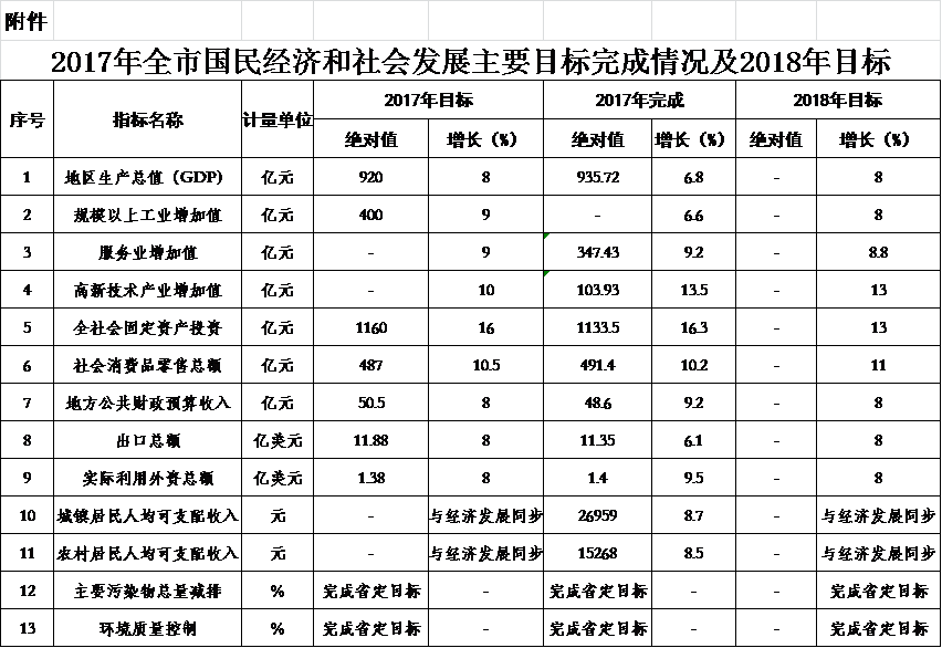 附件:2017年全市國民經(jīng)濟(jì)和社會(huì)發(fā)展主要目標(biāo)完成情況及????????????????????2018年目標(biāo)